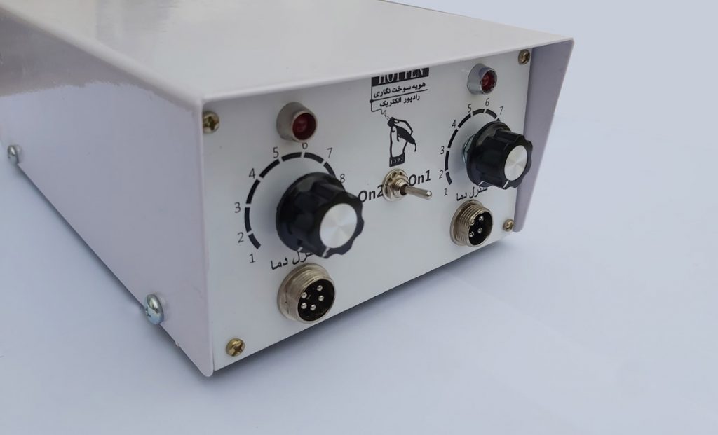 این محصول بومی سازی شده ی نمونه آلمانی می باشد. این محصول با قیمت بسیار پایین تر در اختیار هنرمندان ایرانی قرار گرفته است. هویه سوخته نگاری رادپورالکتریک بصورت کاملا تخصصی برای طراحی روی چوب و  چرم ساخته شده است.